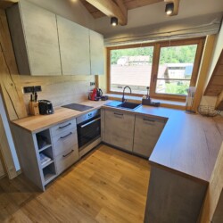 3. apartmán: 1x dvoulůžková ložnice (manželská postel), společenská místnost (TV, rozkládací pohovka – 2x přistýlka), kuchyňský kout (myčka nádobí, kávovar, varná konvice, trouba, mikrovlnná trouba, toustovač, sporák, lednice s mrazákem), koupelna (sprchový kout, vana, umyvadlo, WC).