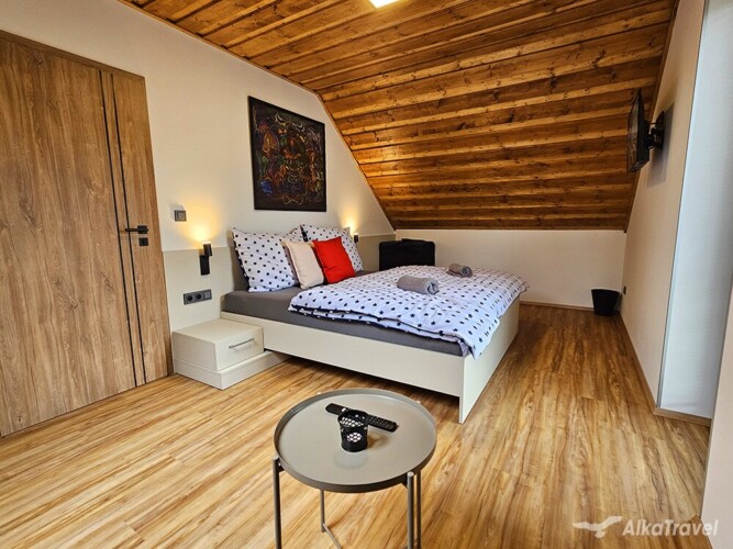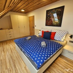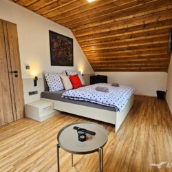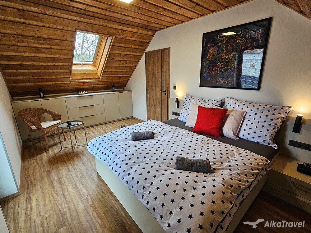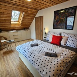 V přízemí najdete: prostorná společenská místnost (TV, gauč, posezení, dětský koutek, vstup na krytou terasu s posezením), kuchyňský kout (trouba, sporák, lednice s mrazákem, kávovar Nespresso na menší kapsle, toustovač, varná konvice, mikrovlnná trouba), samostatné WC, koupelna (2x umyvadlo, sprchový kout), 3x dvoulůžková ložnice. V patře: 2x dvoulůžková ložnice, samostatná koupelna (umyvadlo, sprchový kout, WC). Možnost 2 mobilních přistýlek do pokojů dle vaší potřeby, 1x cestovní postýlka a 1x dětský židlička. Chalupa se nachází na opravdu klidném místě na vesnici - to znamená, že ne vše je hned po ruce (obchody jsou od 5 km), léta zde hmyz a voda (je pitná, ověřeno, ale je minerální a může být trochu cítit síra jako v minerálkách) může chutnat jinak, než-li jste z domova zvyklí (tak si případně vemte i svou oblíbenou balenou vodu). RYBAŘENÍ: řeka Berounka cca 400 - 500 m od objektu, celosvazová povolenka (průtok a hloubku vody v řece negarantujeme, to umí jenom příroda). Bezkontantní příjezd. Termíny k pronájmu: celoročněDetaily